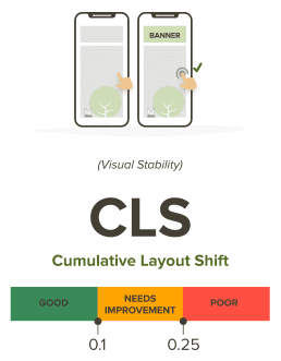 Measures visual stability by tracking unexpected shifts in images, content, and layouts. To ensure an excellent user experience, aim for a CLS score below 0.1, aligning with Google’s standards