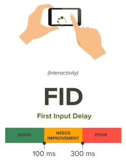 Measures a page’s input delay. A good FID score is 100 milliseconds or less.