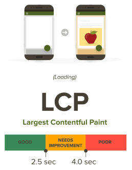 Assesses the loading performance of a web page, with an optimal page load time for main content being 2.5 seconds or faster.